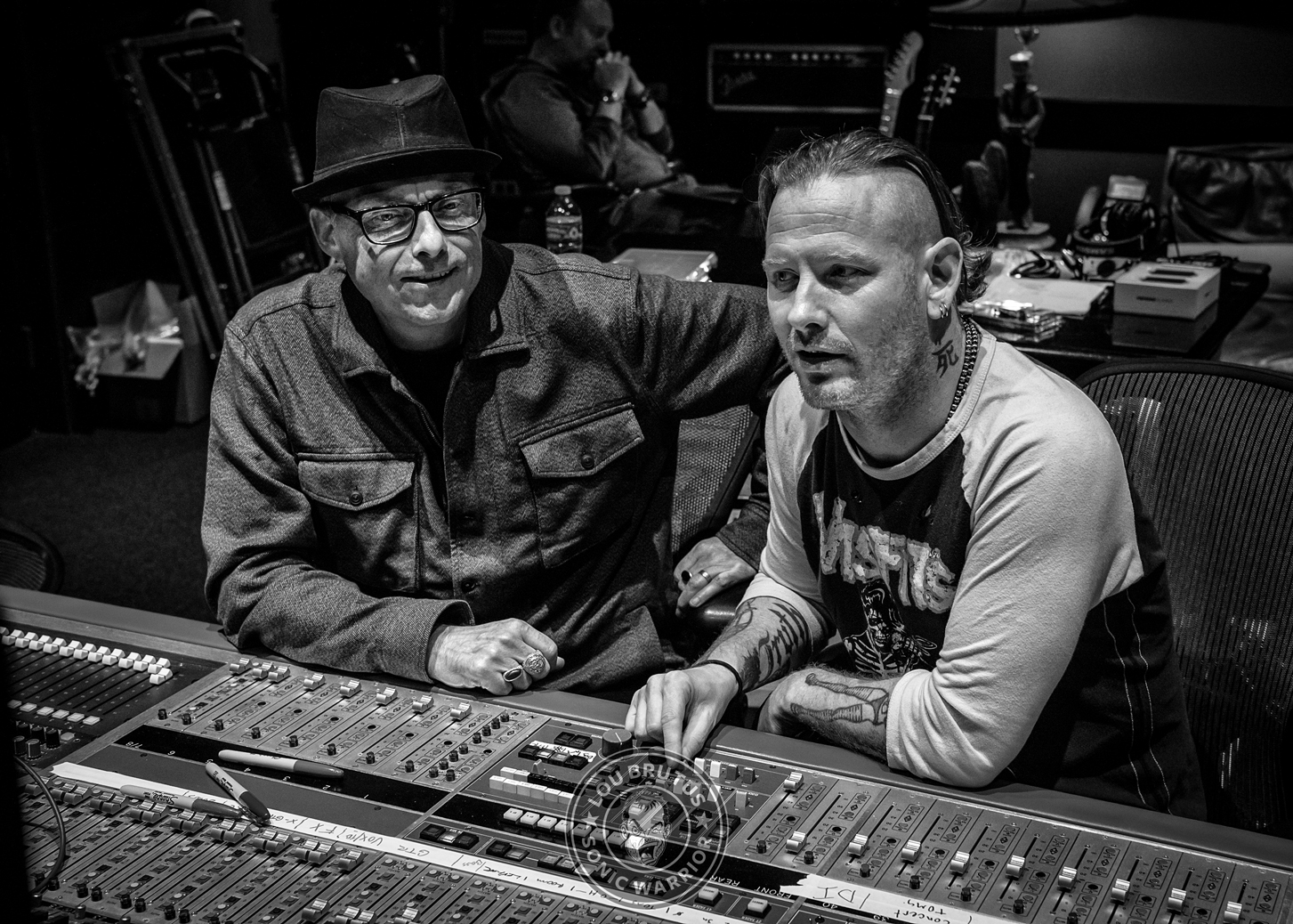 The band had invited him to come out anytime during the recording process of “Hydrograd.” Realizing things were about to finish, Lou hopped on a plane on a Saturday morning, landed and went directly to the studio. He spent six hours with the band and the staff of Sphere Studios L.A. listening to the record, taking photos, and conducting an interview with Corey Taylor. The one-on-one chat covered the album, upcoming tour with KoRn, and band’s return to Rock Fest Wisconsin.