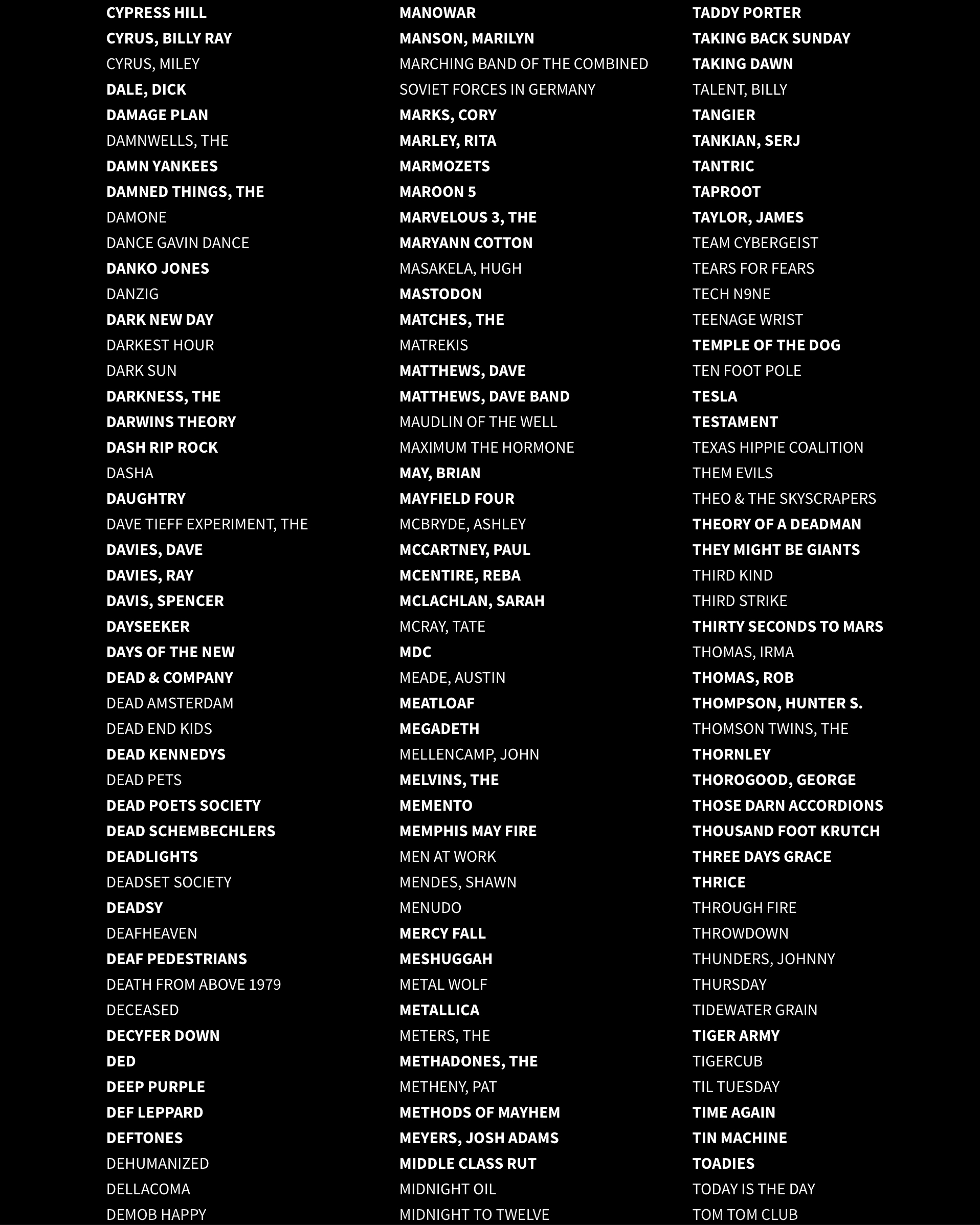 Over the course of the holiday season, we will be adding a large amount of updates to the section of this site called The List. What exactly is it? The List is a comprehensive directory of the artists and groups that Lou has seen perform live, with those he has interviewed further marked.