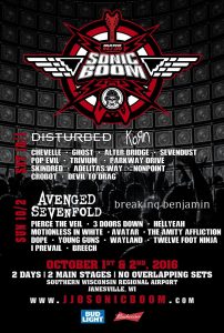 It was a triumphant return to Sonic Boom 2016 in Janesville, WI. The two day festival on October 1st and 2nd 2016 found LB interviewing and photographing a Who’s Who of hard rock including Disturbed, KoЯn, Avenged Sevenfold, Breaking Benjamin, Chevelle, Ghost Alter Bridge, Sevendust, Pop Evil, Trivium, Parkway Drive, Pierce the Veil, 3 Doors Down, Hellyeah, Motionless in White, Avatar, The Amity Affliction, Dope, Young Guns, Wayland, Skindred, Adelita’s Way, Nonpoint, Crobot, I Prevail, Devil to Drag, and Breech. Gratitude to WJJO for bringing LB in once again to host and hang. Thanks also to the rockers of Wisconsin for all the love!